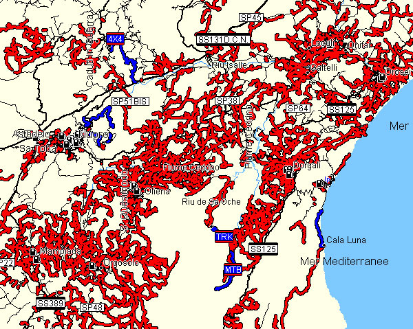 le teoriche strade sterrate rilevate dalle cartografie ufficiali